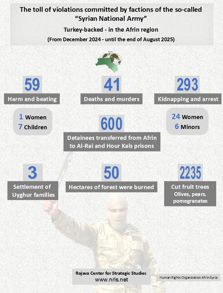 The toll of violations committed by factions of the so-called “Syrian National Army” Turkey-backed – in the Afrin region