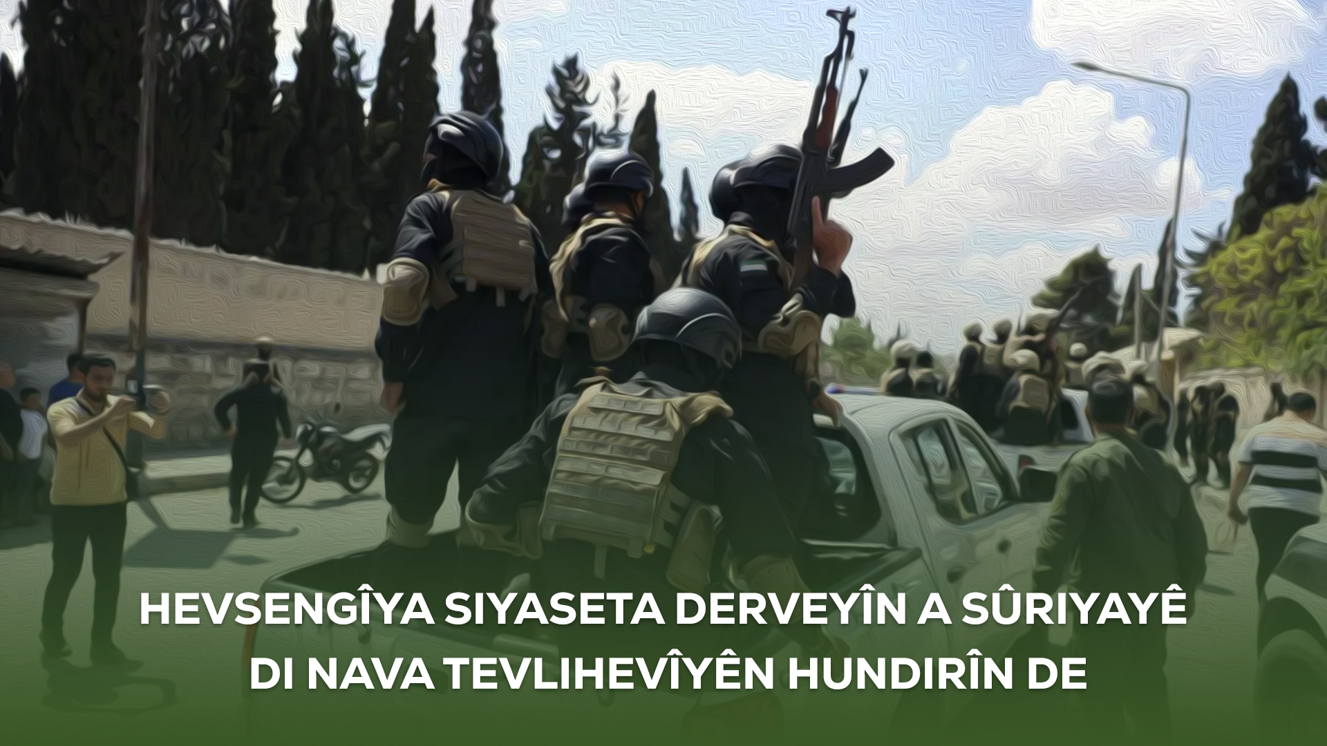 Ji çaxa hilweşîna rêjîma Sûriyayê û avabûna ferwerîya demkî ya xwedî xûyeke tevlihev, ku di navbera komikên çekdar ên berê û hêzên sivîl û siyasî yên avakirî de têkel e, kêşeyeke cewherî derketiye pêşberî dewleta nû; ku ew jî jinûvesazkirina siyaseta derveyîn di nava jîngeheke tevlihev û tijî nakokîyên binyadî de ye. Êdî; ferwerîya ku di rastîyê de berdewamîya siyasî ya sabarinan e; ku berê ser bi Heyet Tehrîr El-Şam ve bûn, ku wê jî di nava xwe de çekdarên biyanî yên mîna ûygur û fransî û ji bilî wan, dihewand, aniha xwe li pêşberî mafdarîya jinûvedanasîna têkilîya di navbera hundir û derve de û di navbera pêdivîyên ewlekarîyê û xwestekên rewabûna navdewletî de, dibîne. Ev dualîtîya hestyar; rûbirûbûyîneke berdewam a xeta siyaseta derveyîn a Sûriyayê ya nû ye, ku hewl dide di navbera vebûna li ser cîhanê û barê mîrateya leşkerî û îdeolojî ku hîn jî tevgerîna wê dixe nava qeydê de û gumanên hêzên herêmî û navdewletî li serê çêdike, hevsengîyê çêbike.