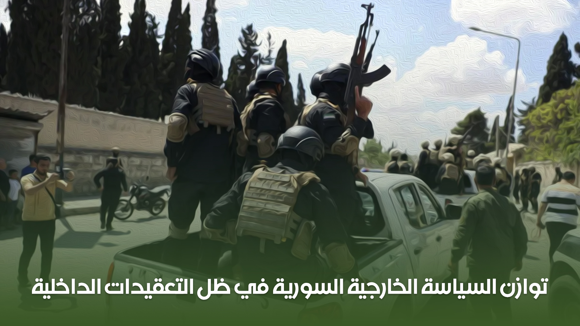 ورغم محاولات الحكومة الانتقالية رسمَ خطوط سياسة خارجية متوازنة، تقوم على مبدأ الحياد الإيجابي والانفتاح على مختلف الأقطاب، إلّا أنّ هذه المساعي كثيراً ما تصطدم بواقع داخلي مضطرب؛ فكل خطوة نحو بناء علاقات دولية جديدة تُقابل بحسابات دقيقة داخلية تتعلّق بتوازن القوى بين الفصائل، وبخشية بعض الأطراف من أنّ أي تقارب مع الغرب أو مع الصين قد ينعكس على موقعها داخل السلطة الانتقالية. هذا التداخل بين الداخلي والخارجي يجعل السياسة السورية الجديدة أقرب إلى عملية توازن مستمرّ بين المصالح والمخاطر؛ فبينما تسعى دمشق إلى كسب الاعتراف الدولي وإعادة الإعمار وجذب الاستثمارات، تجد نفسها مضطرّة في الوقت ذاته إلى التعامل بحذر مع القوى التي شاركت في إسقاط النظام، والتي تمتلك السلاح والنفوذ وتتحسّس من أي تحوّل قد يهدّد مكاسبها الميدانية والسياسية.